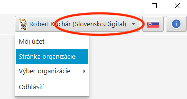 Názov osoby (organizácie) v našej aplikácii vidíte v zátvorke pri Vašom mene na hornej lište aplikácie: